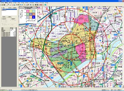 地図情報システム(GIS)により地域人口・世帯・来店範囲、競合の立地関係などを地図上で視覚化し、